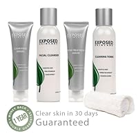 (I posted this review on the other kit, thought it would be relevant here too) I'm 30, a dude, and have been fighting with my skin since i was about 14. I've gone through cheapo in store products (too many to name) and some of the more expensive products: Murad, clinique, etc. No matter what i always had blackheads, a few random pimples, and about 1 to 2 times a month i would get a lovely breakout. my skin wasnt THAT bad but i always always always had problems. I found Exposed by accident. I went online looking for alternative ways to get my skin to stop screwing with me and i got a link for the exposed "lifestyle tips" page. That led me to looking into the actual product. I skeptically pulled the trigger and got the uber kit with all the goodies. First week was not that rough, i got a few new pimples but i noticed my blackheads were getting a little smaller. Most skin care programs will warn you that it usually gets worse before it gets better. It got better. Weeks 2 and 3 showed steady improvement, few new minor pimples and my skin started looking healthier. I'm on the middle of week 4 and my skin looks better than it has in longer than i can remember. I KNOW my skin is healthier too. I used to get up early so i could give my face time to calm down before i went to work. Even washing it gently with my hands would leave it red, patchy, and swollen. Lotion was also a daily requirement. Definitely not the case now, i scrub and scrub and no irritation. I also know it's healthier cause of the comments i get at work. People complain about the tonic. It DOES hurt at first. get over it, your skin is jacked up. I started using it once every other day there was certainly a little discomfort. Now i use it 1 to 2 times a day and there is absolutely no discomfort. Actually, all of the products in this kit have a much shorter and extreme "getting used to" period than other stuff i have tried. I recommend geting the kit with everything on your first buy. Some stuff works better for certain people. I live with my sister and we both use the products a little differently. Try them all and then you can re-buy the ones you really like. Lastly, i like that this program addresses scarring. I've definitely got a few red marks from all the years of torment and like exposed claims, the marks are fading.I looked at the other reviews, definitely a few fakes, it's kind of off putting but whatever. If you leave a comment i'll try to respond. I know how awful it is to worry about your skin all the time and if my input can help another exhausted acne victim i will be glad to give it. No skin care program works for everyone, just make sure give whatever you try a fair chance. Nothing is going to happen overnight. I strongly recommend giving Exposed a chance.