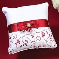 This pillow was more than perfect for my wedding. My colors were red and white so this matched wonderfully. I ended up buying the matching flower girl basket and guest book.THIS IS SUCH A BEAUTIFUL PILLOW I CANT WAIT TO USE IT FOR MY WEDDING. IT LOOKS EXACTLY LIKE THE PICTURE. IT EVEN COMES WITH TWO SMALL RINGS ATTACHED TO IT. I LOVE IT ITS SO PERFECT.....Was exactly as expected. Took the worry out of giving my nephew my wedding ring as there were already rings attached to the pillow.