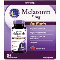 The Natrol 5mg 300 count offer is the right dosage and the right quantity for me. Melatonin helps me to fall asleep naturally without a hang-over.This supplement is amazing. I usually have difficulty falling and/or staying asleep. I take this right as I get in bed, and within 1/2 hour I am asleep soundly. I was skeptical at first but this dosage and the instant release work a miracle for me. I have found that this also works wonderfully for nights that I find myself waking up in the middle of the night, I take one of these, and I am quickly back asleep. No drogginess or post effects in the am; other than feeling rested and calm. Great product!